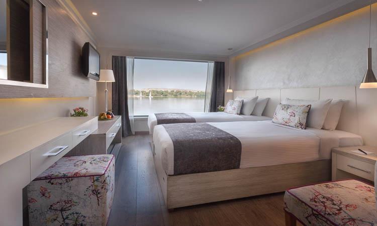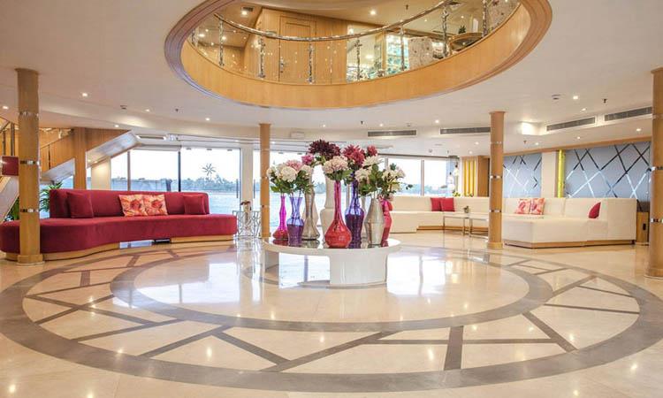 A journey on the Acamar Nile Cruise feels like staying in a refined private residence. The atmosphere is intimate and elegant, the dining is exceptional without being overly formal, and the staff are attentive, providing service that is both warm and professional. Blending classic European style with modern comfort, the Acamar sets a high standard for Nile cruising. It was named Best Boat on the Nile in 2004 and won the Golden Crystal Award in 2005.