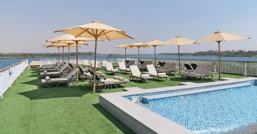 Sail the Nile in style aboard Jaz Viceroy, where comfort meets personalized service. Relax in elegant cabins, savor gourmet dishes from our chef, and unwind with cocktails by the pool bar. Treat yourself to a soothing massage or sauna, then enjoy the mesmerizing Nile views for a truly unforgettable journey.