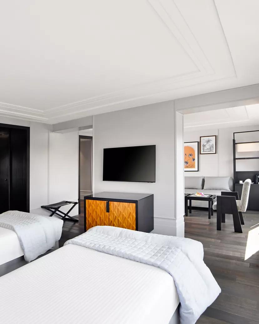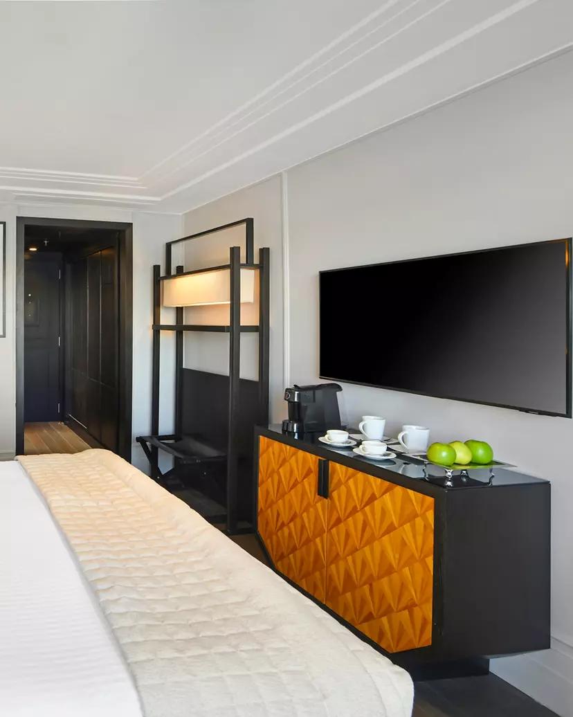 Satellite LCD TV, music channels, in-house video channel, and video player